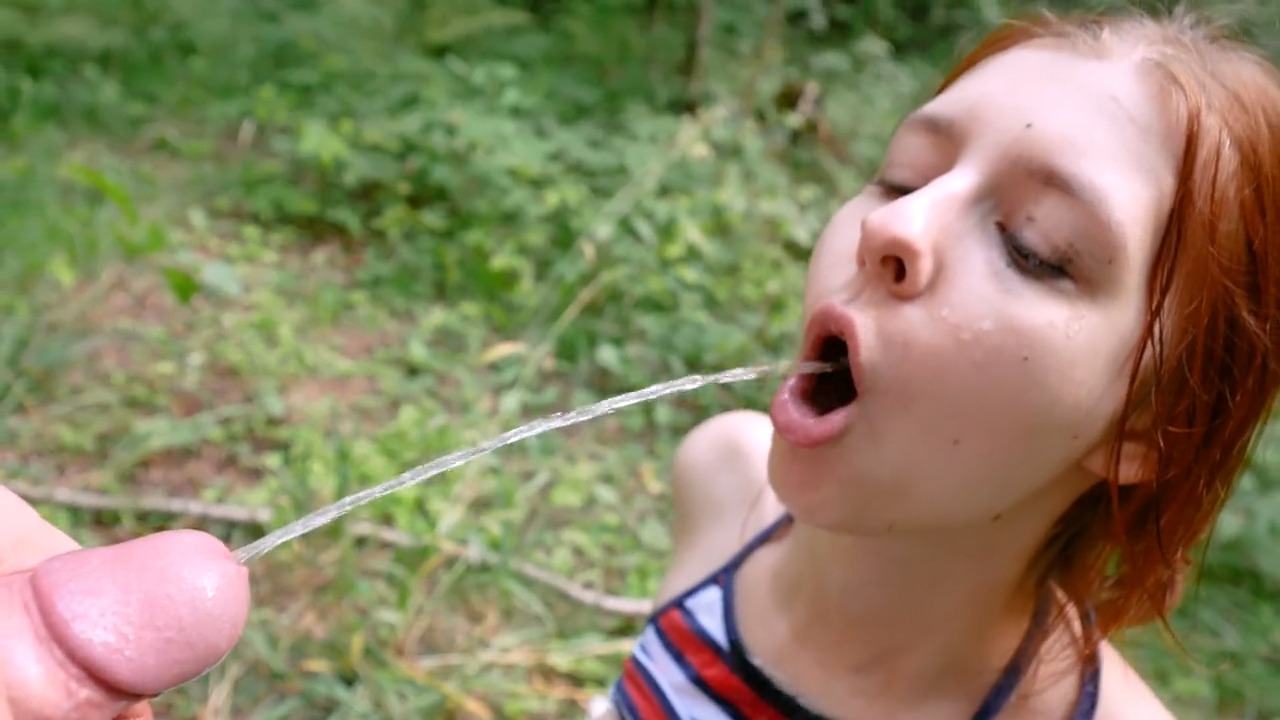 Нассал в рот рыжей шлюшке в публичном парке