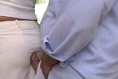 Потрогал попку незнакомки в платье и потёрся стоячим членом